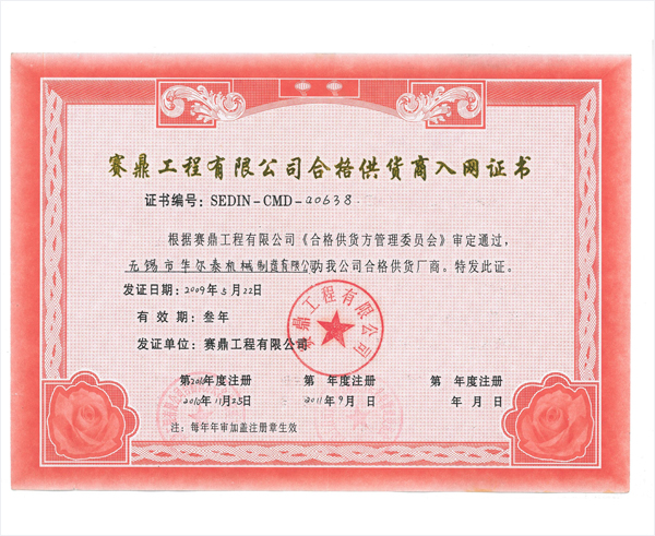 赛鼎2009合格供应商入网证...